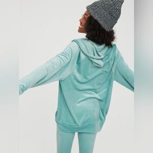 Aerie Soft Velvet Turquoise Full Zip Hooded Long Sleeve Jacket Women’s M