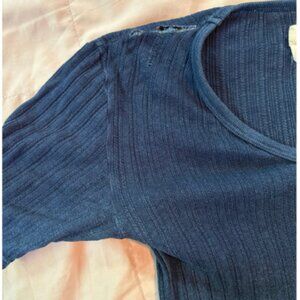 Sold out. Gorgeous indigo. BUT many, many flaws, holes, mends needed, hem, dye variation, marks, fading, etc. Wear. Don’t buy if you’re not okay w condition as is.