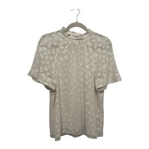 Feather Bone Anthropologie Short Sleeve Ruffled Off White Top Blouse Size Medium
