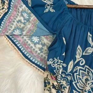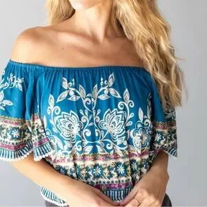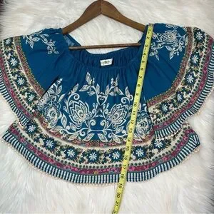 Natural Life SABRINA Cropped Top Shirt Womens Small Blue Floral Boho Beach