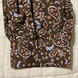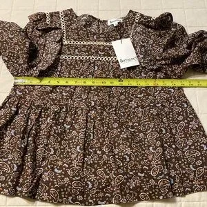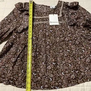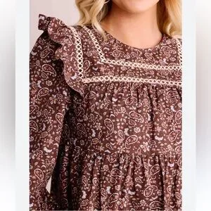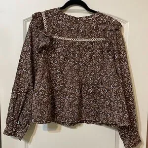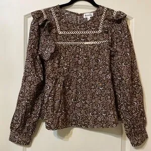 Elevate your style with this chic floral ruffle blouse. Perfect for any occasion, this brown top adds a touch of elegance to your wardrobe.