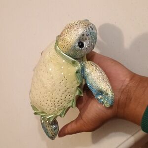 Aurora Sea Turtle Plush Sparkle Shimmer Stuffed Animal Toy Green Blue 7" 2021 with hard eyes.