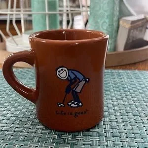 Life is Good Golfer Mug - great condition - no chips, cracks or staining. Nice rust color - great for Fall! 4” tall. From nonsmoking home.