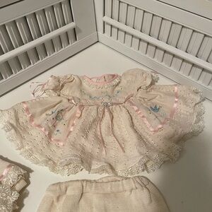 Adorable Benewborn set of three pieces,dresses pants and blankets. Soft and New