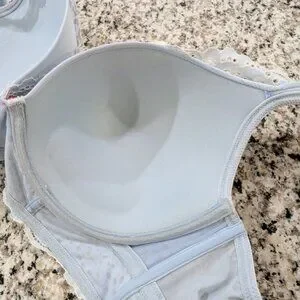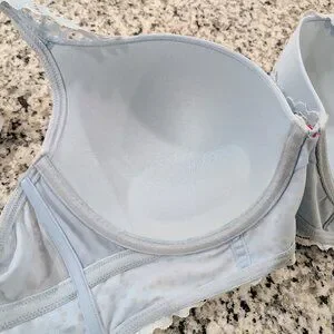 CACIQUE Boost Plunge Bra 42D Light Blue Lace Eyelet Baby Doll Feminine Sexy