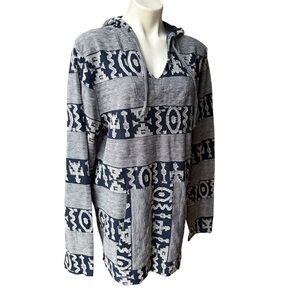Vintage OBEY Hawkwind Baja Tribal Hoodie. Kangaroo pockets. Lightweight. Raw seams. Lightweight Baja hoodie from OBEY. Reverse-knit cotton construction with jacquard pattern detailing.
