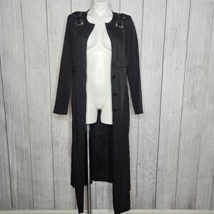 Vieste Jacket Dress, Black Maxi Length Coat with Shoulder Bow Accents, sz 42