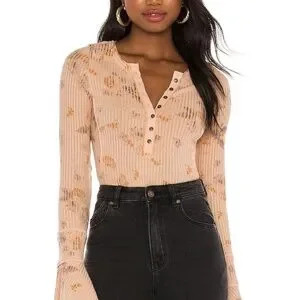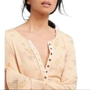 Free People Layer Me Henley Long Sleeve Top in Peach Size XS