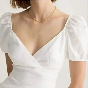 NWT - J. Crew Puff-sleeve V-neck midi dress in stretch linen blend