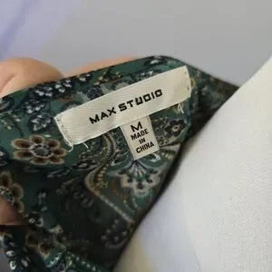 Max Studio | Medium | Green Paisley Clinched Tie Waisted Top