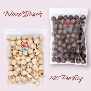 Two new bags of 16mm wood beads in the original packaging. There are 100 beads per bag, for 200 beads total.