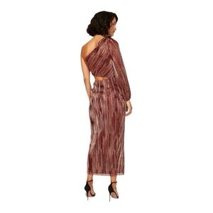 Saylor Laia Midi Dress Cutout One Sleeve in Burgundy Metallic Size Medium