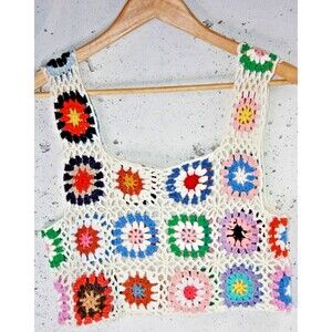 Boho Crochet Hand Knit Crop Top Granny Squares size Medium