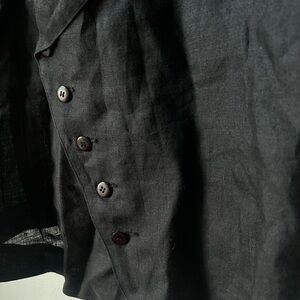 Cute sailor collar with dramatic shoulders and a wasp waist. Avant garde shape with diagonal button closer.