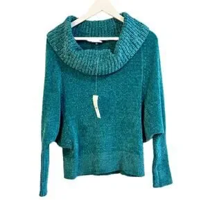 WHBM Teal Green Long Sleeve Cowl Neck Chenille Pullover Size Small NWT