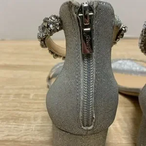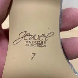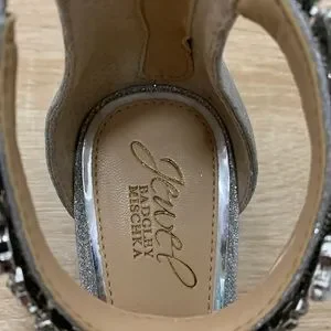 Jewel Badgley Mischka Dress Sandals size 7. Preowned in good condition. Heels measure 2.25.” Working zipper enclosure.
