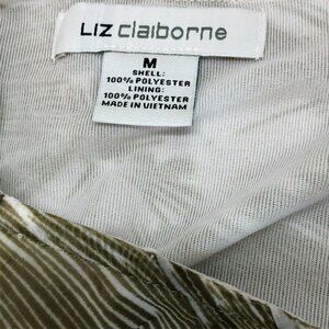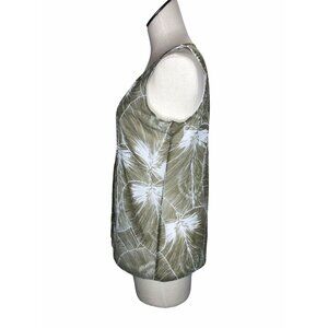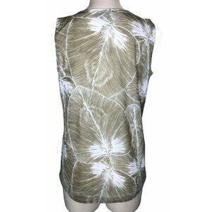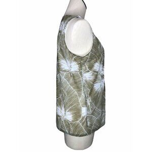 This Liz Claiborne top shirt for women (size M) is a stylish sleeveless blouse in a vibrant green color with a white palm pattern and pleated front. It's made of high-quality polyester.
