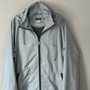 Quicksilver Jacket Windbreaker Womens Lg Hooded Full Zip Pocket Logo Silver