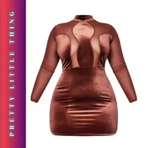 chic, fashion-forward, bodycon dress, weekend-ready, chocolate velvet, mesh panel design, long sleeves, versatile, stylish, strappy heels, understated accessories, sophisticated outing, date with the dolls, elegant, comfortable, flattering fit, statement piece, versatile wardrobe staple, fashionista's choice, chic ensemble, night out, plus size, sexy, prettylittlething.