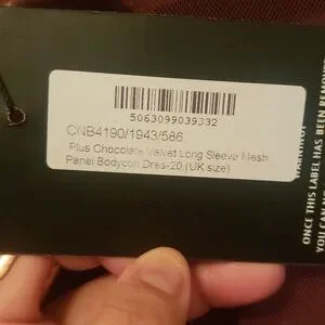 NWT Pretty Little thing Chocolate Velvet Long Sleeve mini dress plus size