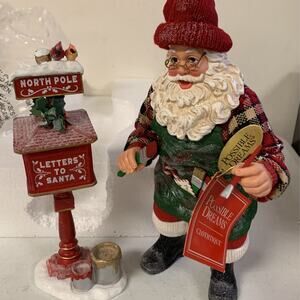TWO-PIECE SET includes figurines of Santa and a holiday mail box