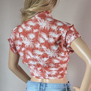 Old Khaki Button-Up Top Womens Size 10 Jungle Foilage Safari Waist-Tie Red-Orange/White