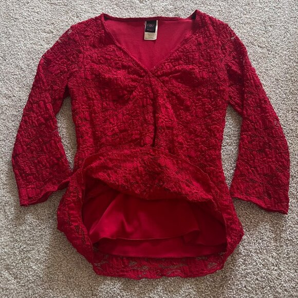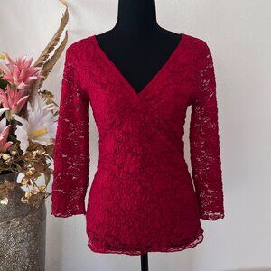 Vintage Wrapper Red Lace Babydoll Long Sleeve Italian Top size Medium