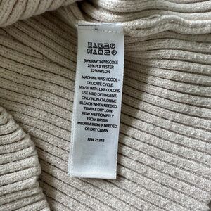 Beautiful style with unique knitting fabric design with warm and cozy turtleneck and cuffed sleeves