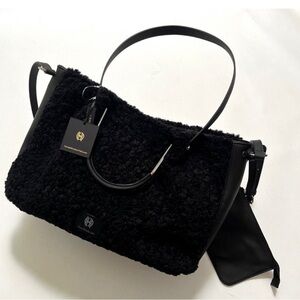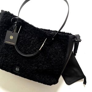 NWT Original HOUSE OF HARLOW 1960 Sherpa Weekender Satchel Bag Black Wristlet