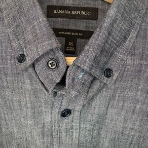 MENS Banana Republic Dark Wash Gray Untucked Slim-fit Button Chambray Shirt, XS