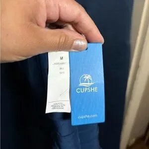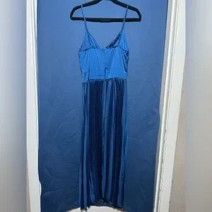 Cupshe NWT Elegant Navy Blue Satin Twist & Keyhole Pleated Dress.
