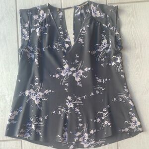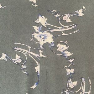 Rebecca Taylor silk short sleeve top! V-neck front and back, flowing Asian inspired silk top with cuffed short sleeves. Gray, pink, blue flower motif. Looks beautiful with jeans, shorts, skirt. Will keep you cool and comfy this summer! Recently dry cleaned for you!