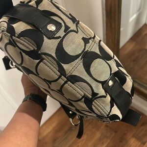 Elevate your style with the Coach Signature Shoulder Bag. Featuring a chic black and blue design, this bag is perfect for any occasion. Crafted with quality materials, it offers both elegance and functionality.