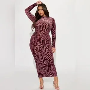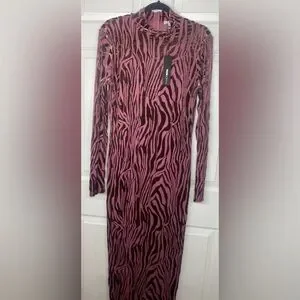 Fashion Nova Running Wild Mesh Maxi Dress - Pink/combo 3X NWT