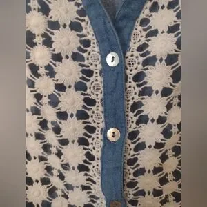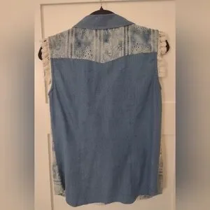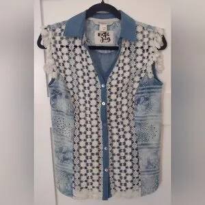 Exotic Jeans Desigual Denim & Lace Button Up Blouse