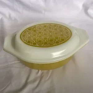 Vintage 1970 Pyrex 1 1/2 Qt. Wicker Weave Oval Casserole Dish w/Lid 043