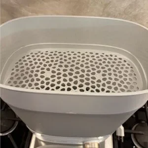Dries with hot, filtered air; contents are dry and ready for the next feed within 40 minutes!