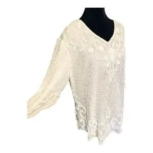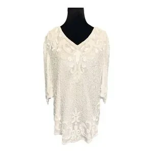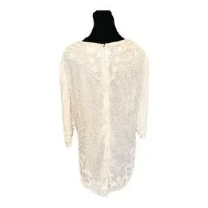 Vintage Rare Tan Chho Solid White Beaded Sequins Evening Top Approx Size XL