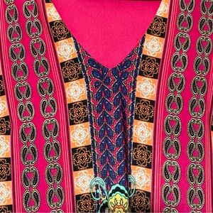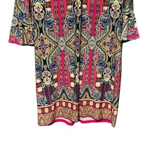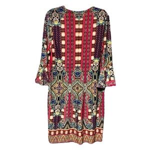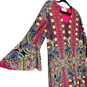 Nicole Miller Colorful Boho Paisley Print V-Neck 3/4 Length Bell Sleeve Dress