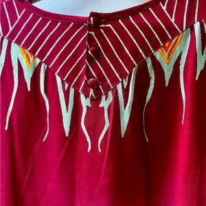 Batik Indonesian painted traditional Red Floral Top and Pant set. Med-large