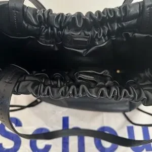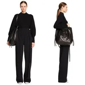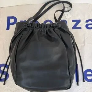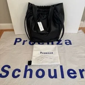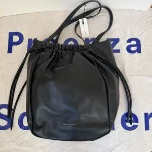 NWT PROENZA SCHOULER Black Leather Drawstring Tote Bag With Detachable Zip Pouch