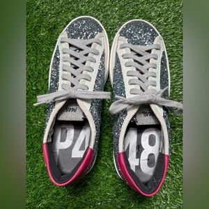 P448 Women’s Johnny Sneaker Silver Glitter Ice Sneakers-Size: 38 (7.5-8)