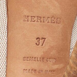 Hermes Off White/Brown Canvas and Leather Platform Booties Size 37 488-050125