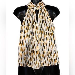 Banana Republic Yellow and White Sleeveless Mock Neck Blouse / XS