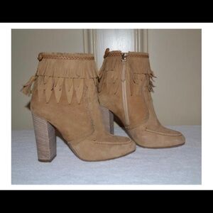Tan colored fringed suede boots. In perfect condition only signs of wear is on soles. With original box and sleeves. Size 6.