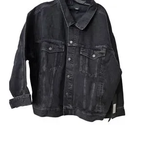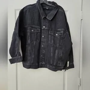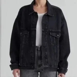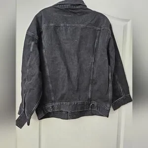 NWT Edwin By Anthropologie Alexa Irony Black Trucker Denim Jacket Sz L