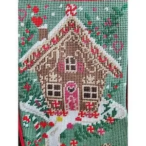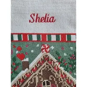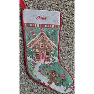 Lands' End Christmas Stocking Shelia monogram Gingerbread House Red C7