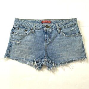 Aeropostale Women's size 3/4 Distressed Raw Hems Blue Jean Denim Booty Shorts