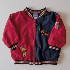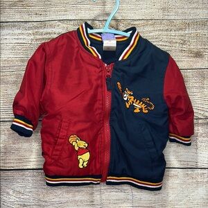 Adorable red and black Disney baby jacket featuring Winnie the Pooh and Tigger. Perfect for little ones.
