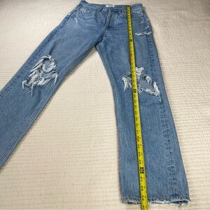 Agolde Blue Wash 90’s Mid Rise Distressed Straight Leg Jeans Size 24